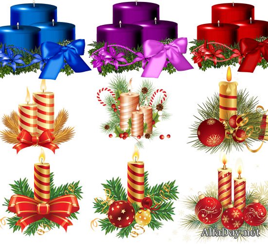 Праздничные новогодние свечи - клипарт на прозрачном фоне