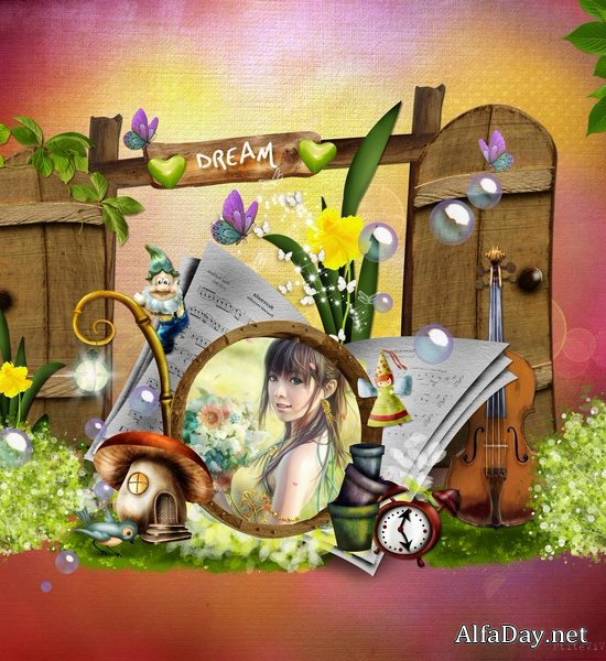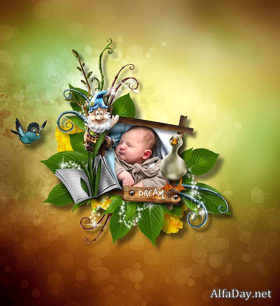 Детский скрап набор для фотоальбомов - Невероятная мечта, гномы, волшебные фонарики