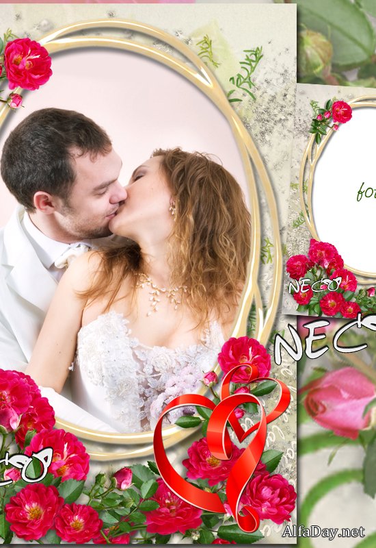 Alfaday.net » ФОТОРАМКИ » Влюблённым » Фоторамка ко Дню Св. Валентина - Малиновые розы и сердечки из красных лент