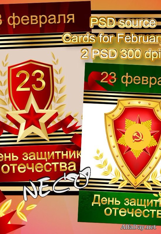 Стильные PSD исходники Открытки для поздравления мужчин с 23 февраля - Славный День защитника Отечества