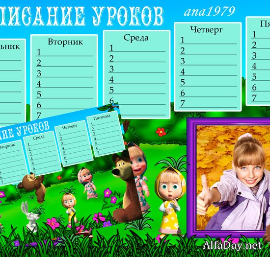 Теги: Маша и медведь, школьное расписание, расписание уроков, шаблоны расписаний, школа, расписание для школьников, school, timetable, lessons, фотошоп, photoshop, png, psd, jpeg, детские коллажи, design, дизайн